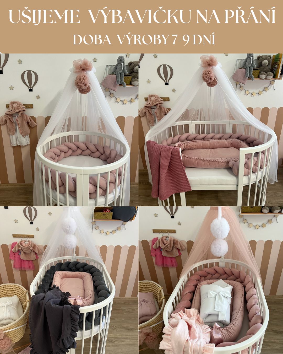 Tento výhodný balíček obsahuje: Rostoucí bílá postýlka 7v1 Modern Baby Pogumovaná bílošedá kolečka k postýlce) Matrace 2v1 PUR pěna (do kulaté a oválné postýlky - jedna matrace, dva potahy) Kulaté nepropustné bambusové...